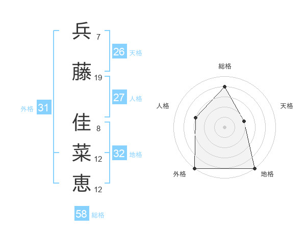 兵藤 佳菜恵さんの総格は58画の4点