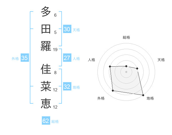多田羅 佳菜恵さんを姓名の画数から五運を鑑定