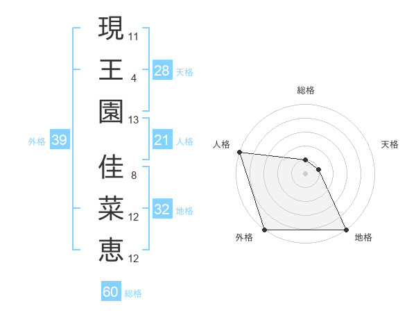 現王園 佳菜恵さんの人格は21画の5点!