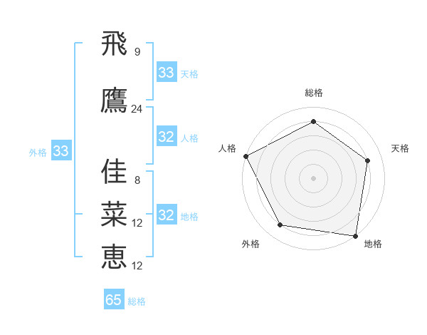 飛鷹 佳菜恵さんの総格は65画の4点!
