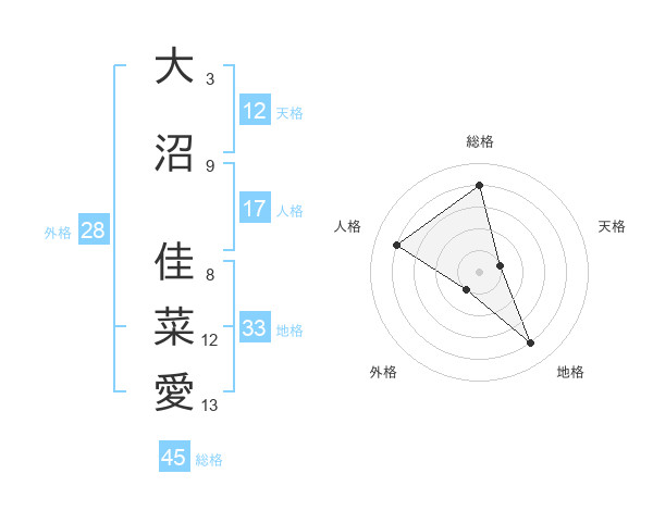 大沼 佳菜愛さんを姓名の画数から五運を鑑定