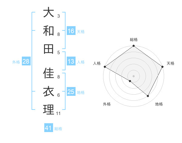 大和田 佳衣理さんを姓名の画数から五運を鑑定