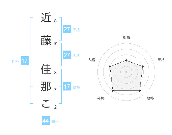 近藤 佳那こさんを姓名の画数から五運を鑑定
