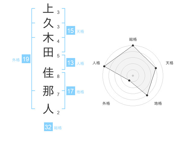 上久木田 佳那人さんを姓名の画数から五運を鑑定