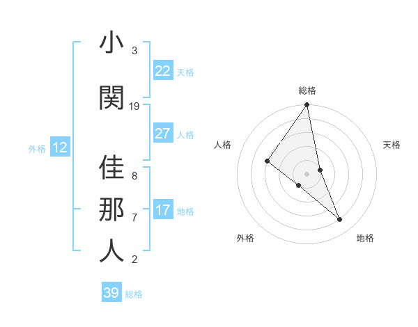 小関 佳那人さんを姓名の画数から五運を鑑定