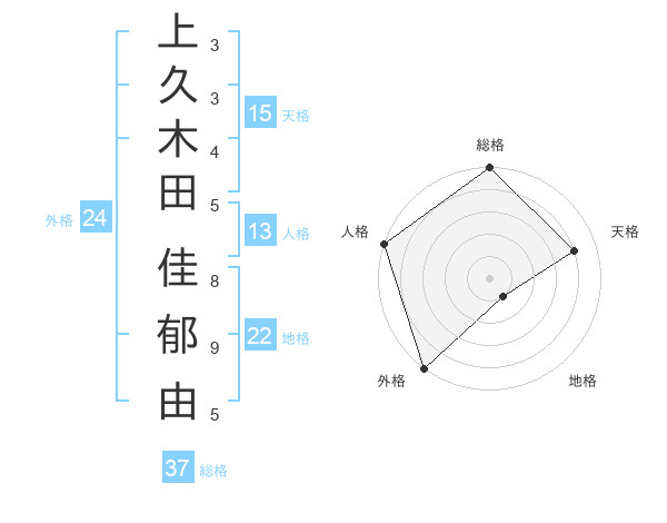 上久木田 佳郁由さんを姓名の画数から五運を鑑定