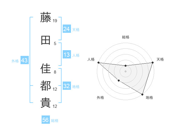 藤田 佳都貴さんを姓名の画数から五運を鑑定