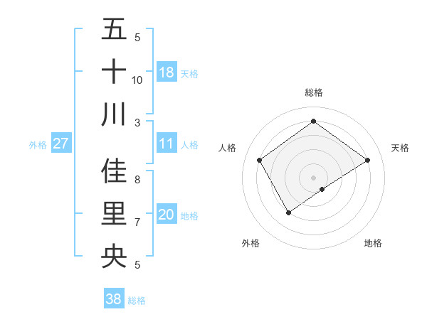 五十川 佳里央さんを姓名の画数から五運を鑑定