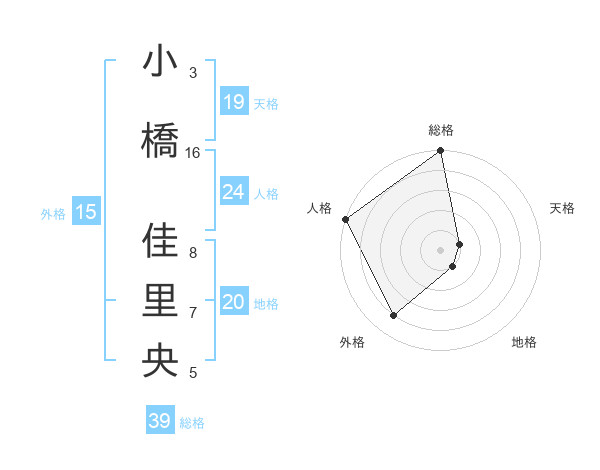 小橋 佳里央さんの総格は39画の5点!