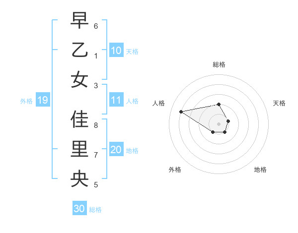 早乙女 佳里央さんを姓名の画数から五運を鑑定
