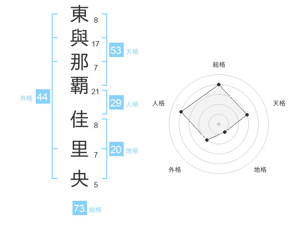 東與那覇 佳里央さんを姓名の画数から五運を鑑定