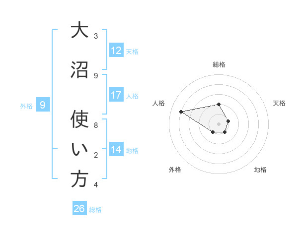 大沼 使い方さんを姓名の画数から五運を鑑定