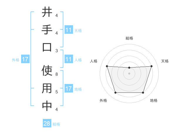 井手口 使用中さんを姓名の画数から五運を鑑定
