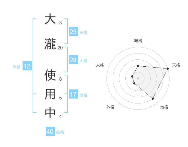 大瀧 使用中さんを姓名の画数から五運を鑑定
