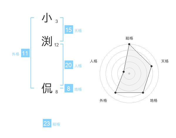 小渕 侃さんの総格は23画の5点!