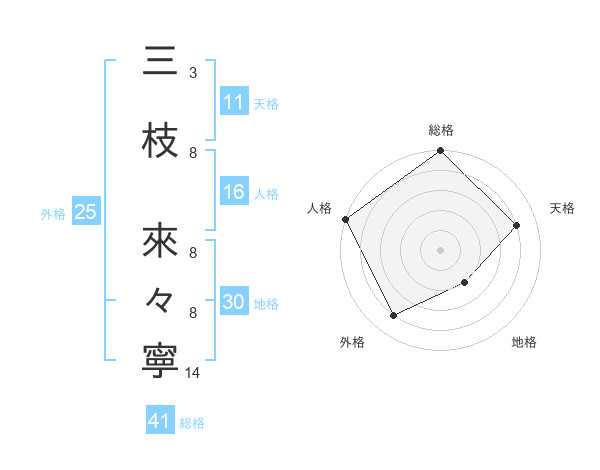 三枝 來々寧さんを姓名の画数から五運を鑑定