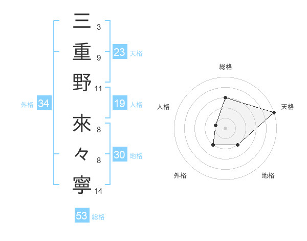 三重野 來々寧さんを姓名の画数から五運を鑑定