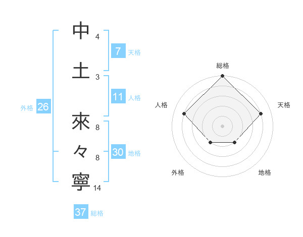 中土 來々寧さんを姓名の画数から五運を鑑定