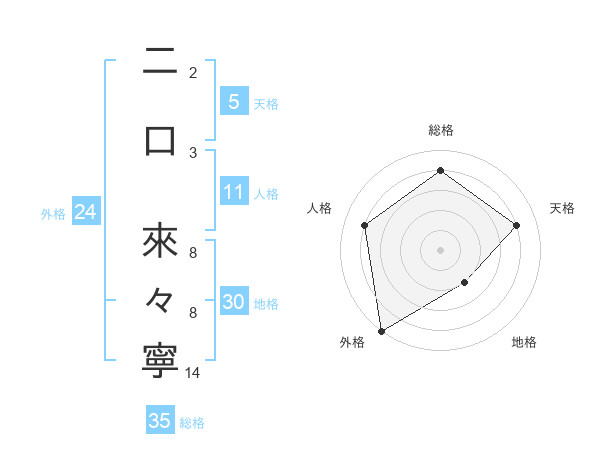 二口 來々寧さんの総格は35画の4点!