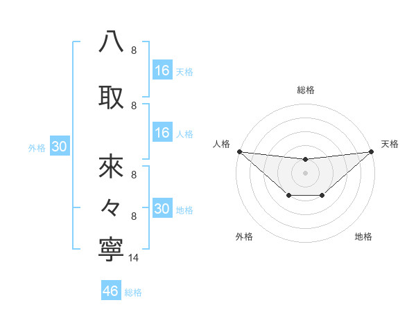 八取 來々寧さんの天格は16画の5点!