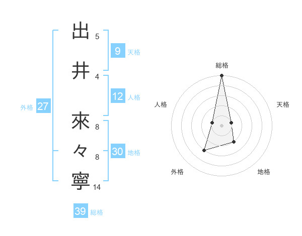 出井 來々寧さんを姓名の画数から五運を鑑定