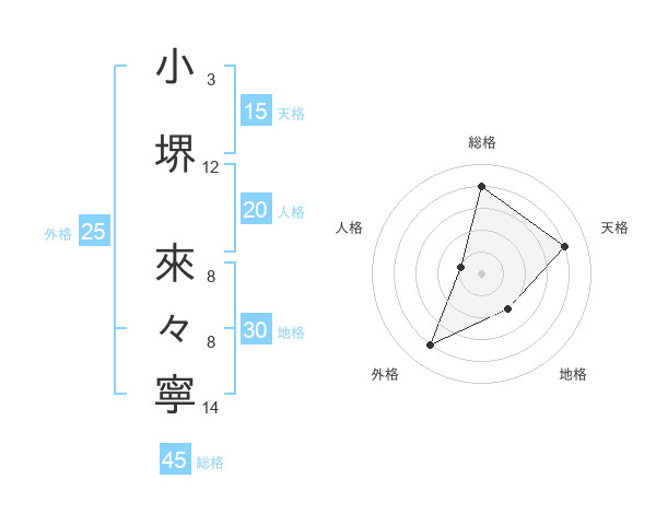 小堺 來々寧さんの外格は25画の4点!
