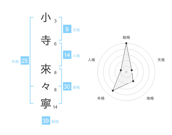 小寺 來々寧さんを姓名の画数から五運を鑑定