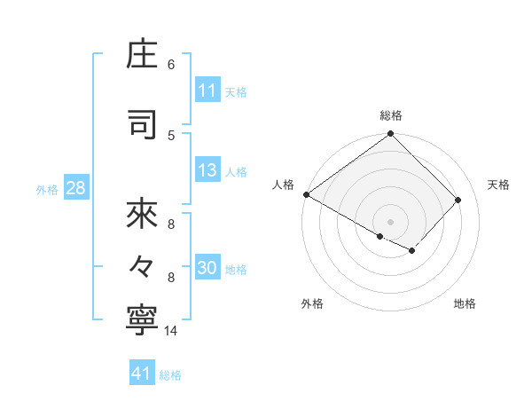 庄司 來々寧さんを姓名の画数から五運を鑑定