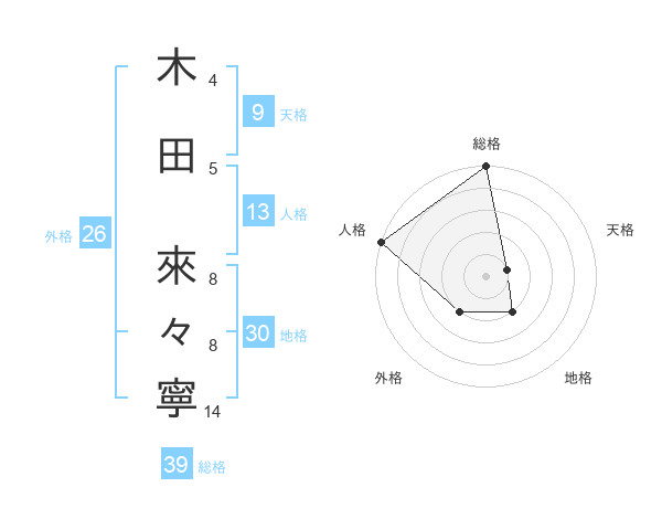 木田 來々寧さんを姓名の画数から五運を鑑定