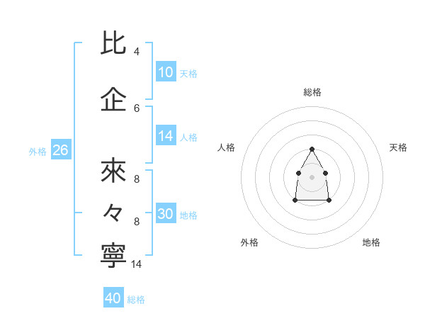 比企 來々寧さんを姓名の画数から五運を鑑定