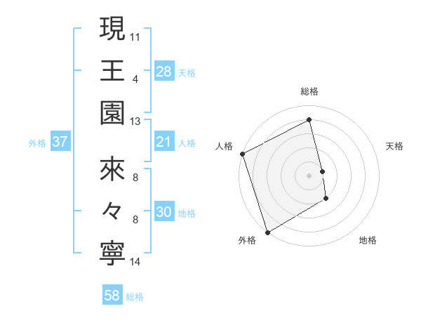 現王園 來々寧さんを姓名の画数から五運を鑑定