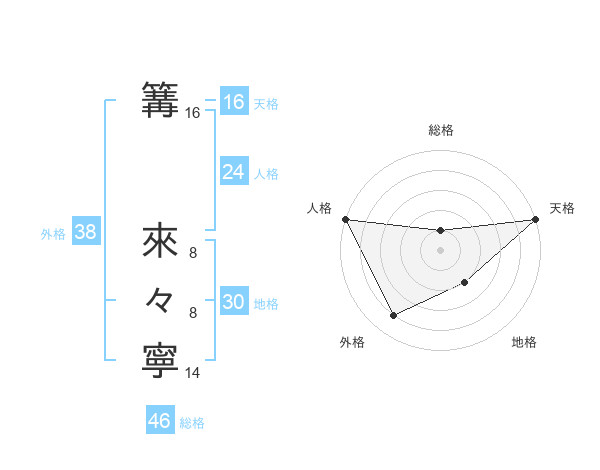 篝 來々寧さんを姓名の画数から五運を鑑定