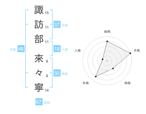 諏訪部 來々寧さんの外格は48画の4点!