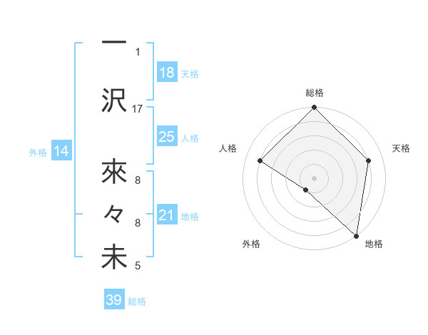 一沢 來々未さんの総格は39画の5点!
