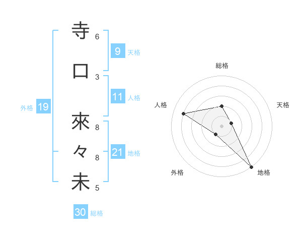 寺口 來々未さんを姓名の画数から五運を鑑定
