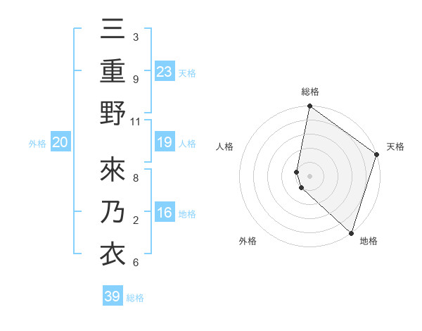三重野 來乃衣さんを姓名の画数から五運を鑑定