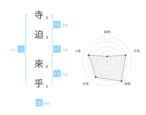 寺迫 來乎さんの地格は13画の5点!