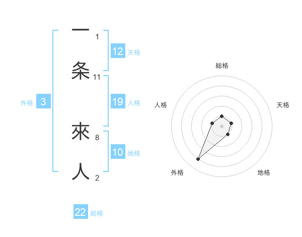 一条 來人さんの総格は22画の1点!