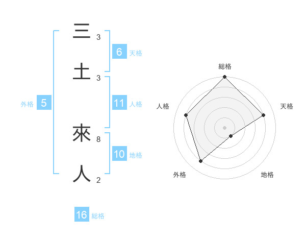 三土 來人さんの総格は16画の5点!
