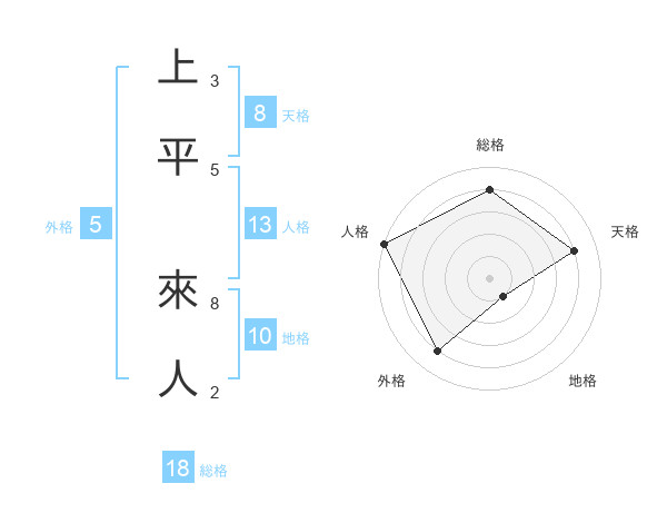 上平 來人さんの天格は8画の4点!