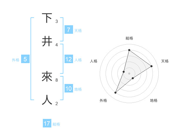 下井 來人さんの総格は17画の4点!
