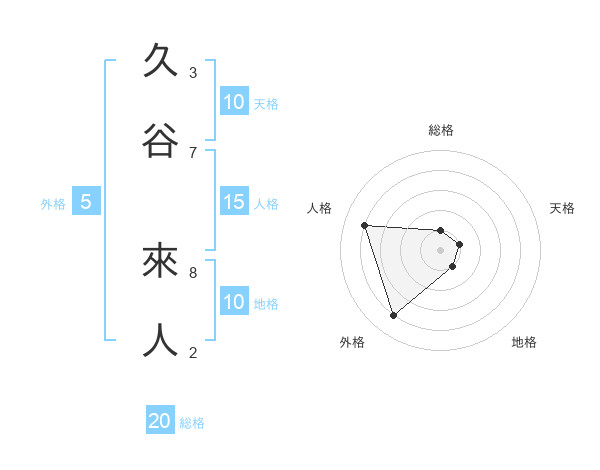 久谷 來人さんの総格は20画の1点!