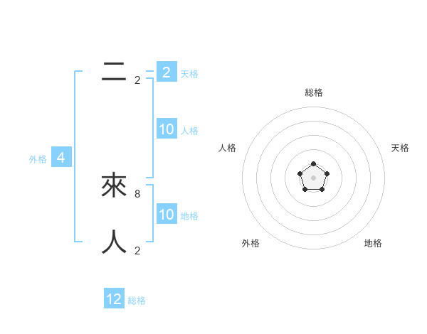 二 來人さんの総格は12画の1点!