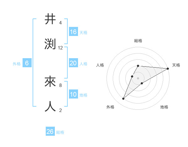井渕 來人さんの総格は26画の2点!