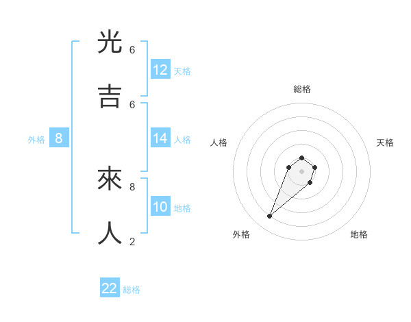 光吉 來人さんの外格は8画の4点!