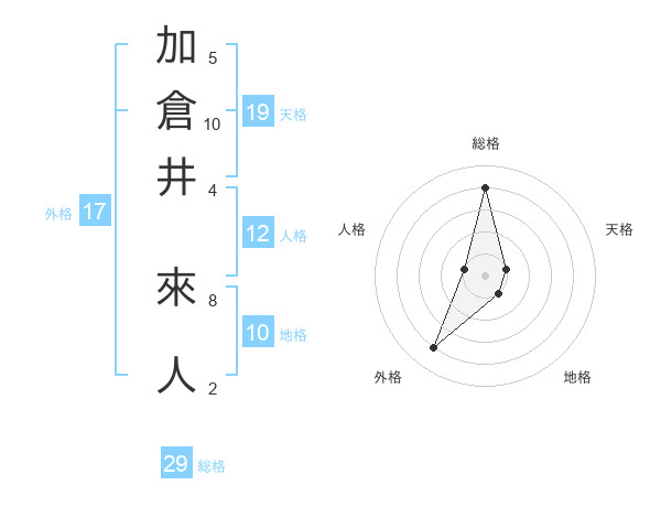 加倉井 來人さんを姓名の画数から五運を鑑定