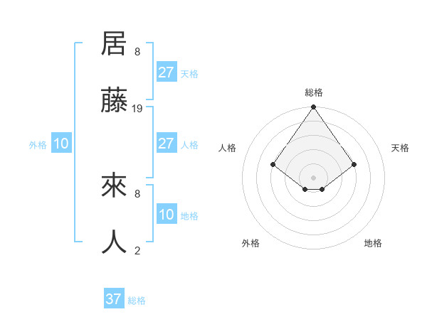 居藤 來人さんの総格は37画の5点!