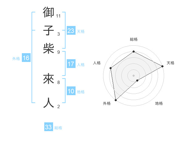 御子柴 來人さんを姓名の画数から五運を鑑定