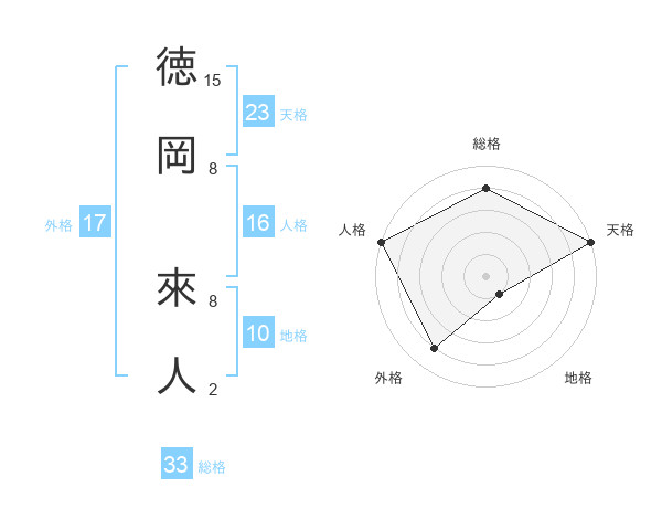 徳岡 來人さんを姓名の画数から五運を鑑定