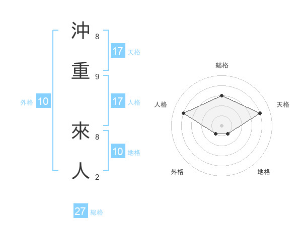 沖重 來人さんの天格は17画の4点!